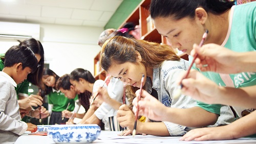 为使学生进一步理解孔子的名言,现场还组织了师生“你演我猜”的活动。唐宇敏老师弹古筝,郑铭哲老师打太极扇,何其颖老师吹葫芦丝,三者共同演绎“三人行必有我师”这句经典。郑铭哲老师和何其颖老师通过安静吃饭睡觉的动作诠释了“食不言寝不语”这句经典。学生们踊跃回答,纷纷猜中答案。随后进行的现场背诵默写比赛让活动现场气氛更加活跃,学生们还在老师的指导下书写了《论语》中的部分名句。很多学生表示很喜欢参与这样的活动,希望孔子学院多多举办。