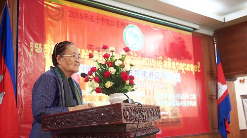 23日下午,在柬埔寨王家研究院礼堂举办了以“承古开今共庆孔院十二载,继往开来喜迎中柬好风采”为主题的“孔子学院日”庆祝活动。柬埔寨孔子学院理事长、王家研究院院长克洛媞达院士在庆祝会上致辞,她说,孔子是中国伟大的思想家、教育家和儒家学派创始人,孔子的思想是中国文化的重要组成部分,对中国和世界产生了深刻的影响。她特别强调,中柬两国自古友谊深厚,坚不可摧,中国永远是柬埔寨的好伙伴、好兄弟,孔子学院也将继续在两国友好关系的发展中发挥作用。随后,汉语教师志愿者表演了中国茶艺、中国功夫、中国乐器、中国舞蹈等带有浓厚中国色彩的节目,孔院师生一起欢庆孔子学院日。志愿者老师的精彩表演,赢得了观众的阵阵掌声。
