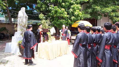 9月23日上午,系列活动在祭孔仪式中拉开帷幕。身着汉服的孔子学院汉语教师志愿者和孔子学院学员约70人整齐地站在孔子雕像前,孔子学院院长谢莫尼勒阁下与中方院长夏修龙教授带领师生面对孔子像庄严行鞠躬礼,汉语教师志愿者王楚燕老师庄重宣读祭文,以表达对这位中国古代伟大的思想家、教育家、儒家学派创始人的敬意。