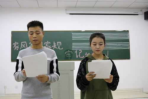 团日活动采取了多样的互动方式激发了同学们的积极性,让同学们深深思考“家风、家训、家规”在自己家中有何种方式的体现,有的班级根据自身班级的特色加上了《千古家训》引导来让同学们沉思于我国优良的传统文化,并同时加之带领同学们朗读经典优秀的家训。
