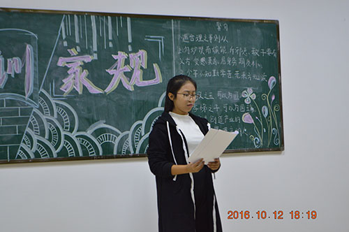 10月12日,艺术学院各个班级就“家风,家训,家规。”开展团日活动。其目的弘扬传统美德提高自身文化素养,树立正确世界观、人生观和价值观。