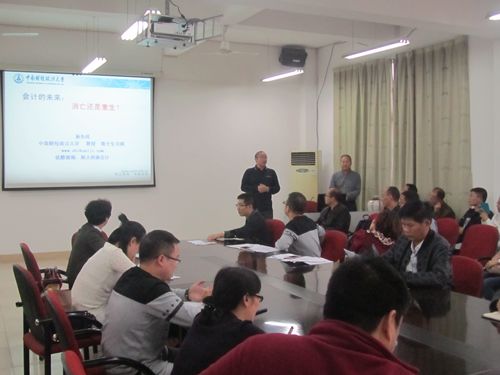 为浓厚教科研的交流研究氛围,进一步提升教科研水平,10月19日下午,会计学院特邀中南财经政法大学施先旺教授,在立信楼504会议室做了《会计的未来:消亡还是重生?》的专题讲学报告,会计学院全院教师聆听了讲学报告。报告会由会计学院院长陈小林主持。