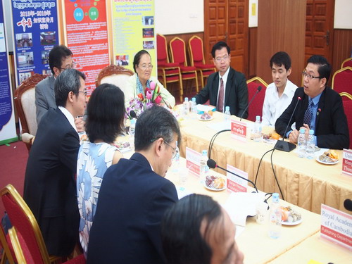 10月25日下午,在社长张德意的带领下,江西人民出版社代表团一行4人访问了柬埔寨王家研究院孔子学院。柬埔寨王家研究院院长克洛媞达院士(Academician KHLOT Thyda)、孔子学院院长谢莫尼勒阁下(H.E.CHEA Munyrith)、中方院长夏修龙教授会见了客人。