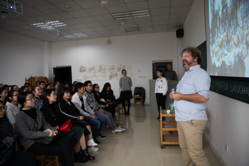 下午3点,Per Herseth先生从经济学角度讲解艺术品市场。讲座由副院长虞斌主持。讲座中,Per Herseth先生提出成功的几个要素,并以生动的例子阐述了让市场说话的道理。他提出要积极听取市场的意见,积极证明自己的能力和社会价值。在与同学们交流的互动环节,Per Herseth先生希望同学们毕业后先就业,协调好生活和艺术的关系,坚持梦想,增进智慧,锲而不舍,不断前进。
