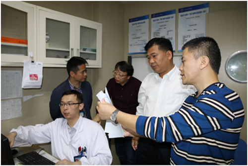 10月24日上午,在华山医院,该院信息科科长黄虹热情接待了张志平院长一行,详细介绍了华山医院信息化建设、科室管理、无线网络及移动医疗应用经验。在黄科长的陪同下,张院长一行参观了华山医院信息科、门诊、神经内科住院病区。在神经内科护士站,该院许雅芳护士长热情介绍了移动医疗应用场景,交流了护理管理经验,其专业的技术能力、良好的职业素养、有效的沟通技巧给临床医学院/附属医院考察人员留下了深刻的印象。