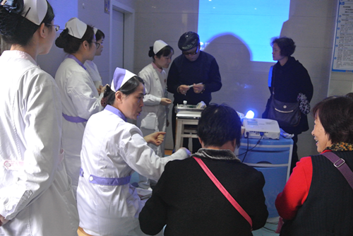 本次活动由内分泌科护士长周素筠主持,护理部曹春凤老师现场观摩指导,为患者讲解了规范注射的重要性及必要性;糖尿病专科护士江维及护士詹梦云还为患者进行了讲课,通过图文并茂,生动形象的讲授方式,让糖友们学会如何规范注射胰岛素。活动现场气氛极其活跃,大家发言积极踊跃。