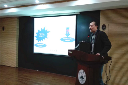 本次讲座题目为“免疫负调节中的糖生物学机制—Siglecs配体研究”。贾乙博士以在美国的研究成果为基础,以药理与临床研究之间的关系为主题,从糖生物学的调节机制、药物研发、到药物应用等层面上,讲述了科研的魅力以及价值所在。讲座内容丰富、观点新颖、授课方式生动,赢得了在座师生的阵阵掌声。