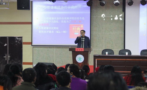 座谈会上,来自中小学一线的教师们纷纷向专家学者们畅谈从教以来的酸甜苦辣;在咨询室,教师们就自身的一些困惑向专家们倾倒“苦水”,寻求良方;心理测量室里更是络绎不绝,教师们争先恐后利用专家带去的心理学软件进行自测......教育心理教研室黄金生主任为全体教师作了一场题为“教师心理健康状态的自我测评”的心理学讲座,讲座精彩纷呈,掌声阵阵,听众被黄老师的激情所深深感染;而在操场上进行的团体辅导活动更是吸引了一大批教师的参与,不仅欢声笑语贯穿活动始终,而且通过这些精心设计的活动对于人与人的交往关系有了深切的感受。