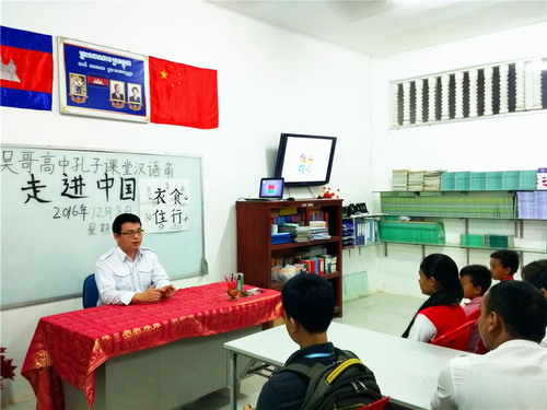 12月8日,为了提高学生的汉语交流能力,促进学生对现代中国的了解,柬埔寨王家研究院孔子学院暹粒省吴哥高中孔子课堂举办了以“走进中国——衣食住行”为主题的“汉语角”活动。在吴哥高中孔子课堂学习的中高级汉语学员50余人参加了此次活动。