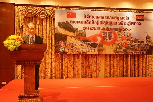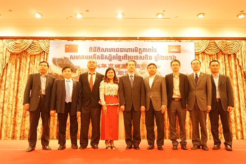 熊波大使在晚会上致辞,他指出,随着中柬两国关系的发展,两国人民之间的来往越来越密切,中国将为柬埔寨学生提供更多地赴中国留学的机会。到中国留学将有助于柬埔寨学生更好地认识中国、了解中国,从而进一步加强中柬两国之间的民心相通,希望中国校友会成为中柬人民相互了解和沟通的桥梁。