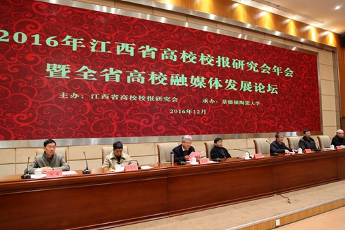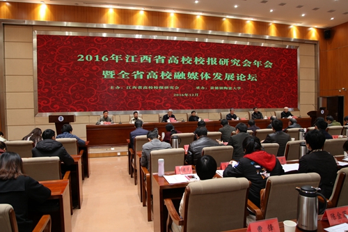 12月16至17日,江西省高校校报研究会2016年会暨全省高校融媒体发展论坛在景德镇陶瓷大学召开。来自全省高校的分管宣传工作的校领导、党委宣传部长或副部长、校报编辑部主任、编辑和学生记者代表,以及江西省各高校部分老报人、省高校校报研究会常务理事等60余人参加了本次年会。