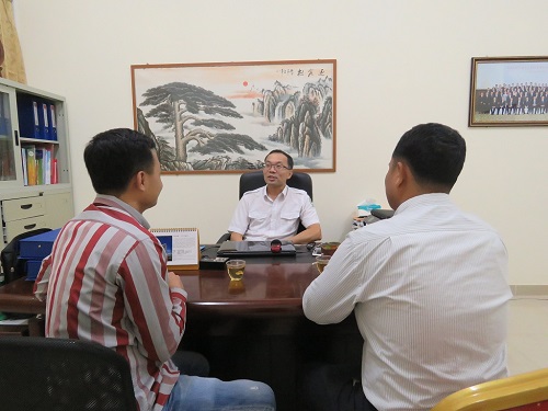 夏修龙院长给中柬友谊电台记者赠送书籍