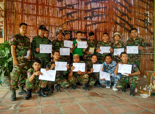 柬埔寨孔子学院特种伞兵部队911旅汉语中心开展“武器装备实践教学”活动