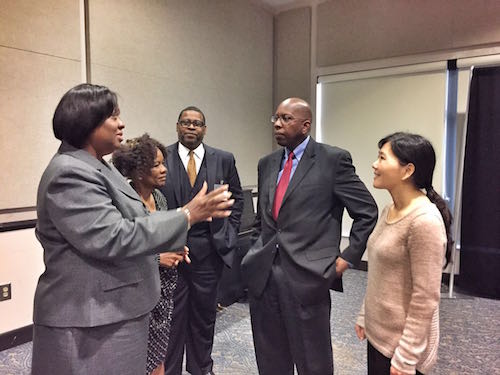 随后,萨凡纳州立大学校长多齐尔博士(Dr. Dozier)向与会听众致辞,她告诉大家萨凡纳州立大学与很多其他国家的大学都有合作,特别提到与中国九江学院的合作,两所学校的学生通过交换生、夏/冬令营等合作项目体验到了不同的文化,同时也收获了书本之外的知识。她接着说道:“萨凡纳州立大学孔子学院不仅为在校师生提供了汉语课程和丰富多彩的文化活动,也为周边社区民众打开了一扇了解中国和中国文化的大门。希望大家充分利用这个平台,走进孔子学院的汉语课堂,更多地参与孔子学院举办的文化活动。”
