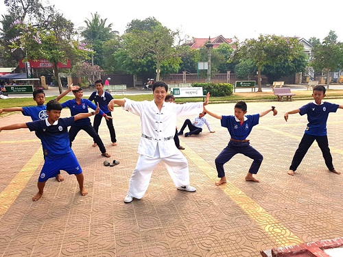 3月14日一大早,伴着晨起的朝霞,柬埔寨王家研究院孔子学院马德望国际大学汉语中心大学生汉语初级班的学生在太极拳中开始了新的一天。太极拳体验交流课程在马德望国际大学汉语中心开设已近一个多月,太极课程不仅在校内引起师生们的广泛关注和喜爱,更是引起校外人士的参与和投入,国内外太极爱好者成为马德望河岸一道亮丽的风景线。