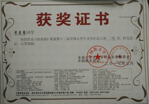 在近日举行的第十二届全国大学生文学作品大赛中,我校文传学院积极组织学生参赛,上报了21份作品,经大赛阅卷老师初评、值班评委复评、作家团终审评定,有17篇作品喜获佳绩。