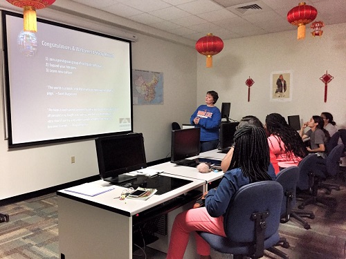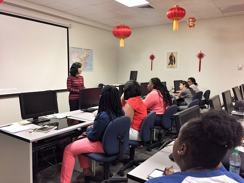 美国当地时间3月31日,美国萨凡纳州立大学孔子学院在孔子学院语音实验室举行了2017年暑期大学生夏令营启动仪式。此次为期两周的暑期夏令营活动是美国萨凡纳州立大学孔子学院举办的第一次美国大学生访华交流项目,旨在邀请孔院学生来华学习汉语,体验中国文化,了解真实的中国。萨凡纳州立大学国际交流中心留学处梅兰妮·史密斯(Melanie Smith)、教育学院助理教授基沙·坎宁安(Kisha Cunningham)、孔子学院全体教师以及二十名来自萨凡纳州立大学的在读学生参加了此次启动仪式。