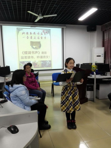 此次活动是图书馆新开通的栏目《蝶湖书声》的一次线下交流活动,旨在让读者在繁忙、紧张的学习、工作之余,用听的方式来“看书”,让眼睛暂时休息,让耳朵替我们在“书海”中继续畅游!报名此次活动的朗读者共有9人,除了爱好读书的同学和老师外,还有一位特殊的小朗读者——来自双峰小学三年级的许知薇小朋友。
