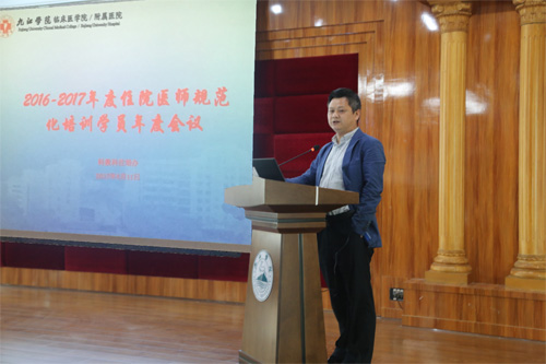 会上,胡志坚副院长对住院医师规范化培训的历史、进展及国家和省卫计委对住院医师规范化培训的政策支持进行了简要的概括,并强调了住院医师规范化培训的重大意义。同时对临床医学院/附属医院2016—2017年度住院医师规范化培训工作成绩表示了肯定,对表现良好的基地提出表扬,同时指出少数基地仍有部分不足之处,并督促各基地持续改进。