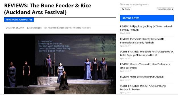 新西兰的年度奥克兰国际艺术节在今年3月8日至26日举行,其中最令人瞩目的艺术节委任创作的新歌剧《拜山人》主角邀请了国际上知名的歌剧演员。我校艺术学院的王荇荇博士受邀出演女主角。作为组委会从中国邀请的唯一歌唱家,王荇荇于2017年3月1日赴新西兰奥克兰参加歌剧的排练,并于3月22日开始参加《拜山人》为期四场的世界首演。演出大获成功,受到各方媒体的高度评价。