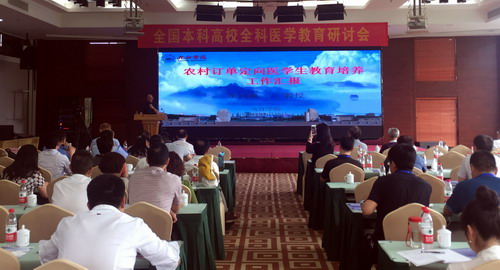 本次会议的主题为“发展全科医学,促进健康中国”,中国高等教育学会医学教育专业委员会理事长、北京大学常务副校长柯杨教授做了主旨讲话。来自北京大学、中国医科大学、赣南医学院、广州医科大学、武汉大学等知名高校的9位专家代表做了大会主题报告,从“全科医学在医学教育中的定位与实施”、“推进全科医学建设、强化整体医学理念”、“5+3全科医学培养模式下院校教育的研究与实践”、“我国订单定向免费医学生培养成效及存在的问题”等多方位多角度进行了经验介绍和学术探讨。九江学院基础医学院院长车向新教授受邀做了“农村订单定向医学生教育培养工作汇报”的主题报告,介绍了我校在定向医学生培养方面所做的工作。来自全国各医学本科高校的100多位代表对9位专家代表的主题报告及我国全科医学教育的发展实践、体制机制、经验教训等各方面进行深入的研讨交流。
