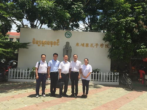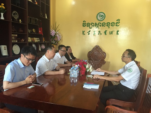 6月13日,由刘焰副院长率领的贵州交通职业技术学院代表团一行3人访问了柬埔寨王家研究院孔子学院,孔子学院中方院长夏修龙、院长助理陈晶雯热情接待了刘副院长一行。