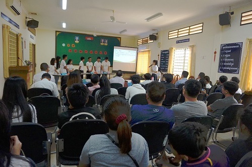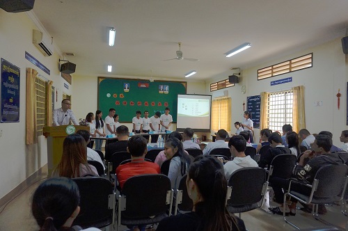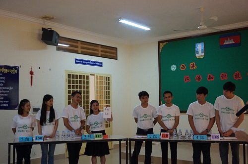 6月25日下午,柬埔寨王家研究院孔子学院西哈努克省高级中学汉语中心举办第三届“西港汉语知识技能大赛”。此次比赛共有西港汉语中心和生命大学中文系选送的8位学生代表参加。西哈努克省高级中学高吴提校长(KHOV Vuthy)、詹多德副校长(CHAN Tradeth)、西哈努克省教育厅林江老师(LIM Kheang)、西哈努克省高级中学王浩老师(MANNI Voth )、汉语中心师生以及社会各界人士共100余人参加了此次活动。