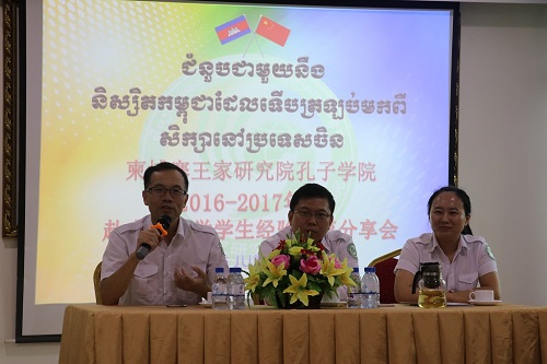 谢莫尼勒院长和夏修龙院长希望留学生们回国后继续努力,不要懈怠,百尺竿头更进一步,为柬埔寨的发展奉献自己的力量。(洪姗)