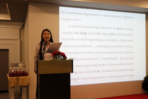 克洛媞达院长在致辞中感谢老师们为柬埔寨作出的贡献,她动情地说,我今天怀着十分不舍的心情参加离任大会,一年的时光很快过去了,仿佛就像昨天相识一样。孔子学院像一个大家庭,通过大家的努力现已成为柬埔寨知名的教育品牌。她欢迎老师们继续关注柬埔寨,关注孔子学院,祝大家回程一路平安。