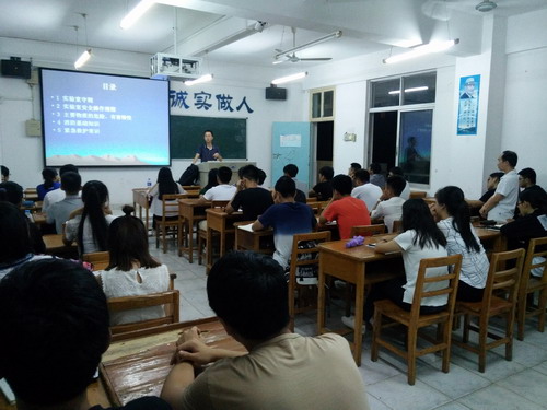 9月14日,为了保证实验室的安全,鄱阳湖中心程鹏飞博士、邱秀文博士等老师专门对已进入和即将进入实验室进行实验研究的研究生和本科生进行了安全知识培训。培训内容包括实验室安全操作规程、主要危险有害物质的预防、消防基础知识、以及紧急救助常识等方面进行了讲解。