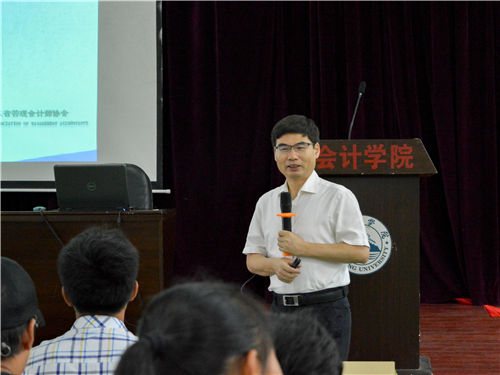 讲座中,林斌教授分别从专业现状、专业主要研究方向、人才培养及定位、课程体系、专业精神和科技活动等方面,对会计专业展开了介绍。他用丰富的理论知识和实践经验,首先对会计理论教学和会计实际操作的应用与指导做出了详细的解说;随后,他围绕会计职业前景、会计行业所处环境、企业会计岗位与职称等几个方面,向在座的同学们详细解读了会计这个行业,并希望同学们要努力钻研业务,刻苦提高专业技能,做一名专业的、资深的会计类高级人才;接着,他以会计未来的就业岗位是什么,学好会计专业需要什么为中心,解答了“如何才能学好会计”这个在同学当中存在的一个普遍疑惑,他强调到:作为一名合格的会计人员,一定要有职业道德、财务技能、软件操作、沟通能力等基本素养,不禁博得台下同学们的阵阵掌声。