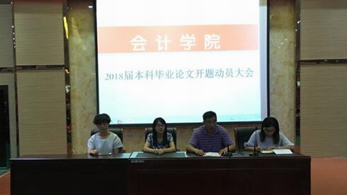 9月18日晚,会计学院近600名本科毕业生在香远楼三楼报告厅参加了毕业论文开题动员大会。会议由会计学院教学科研管理科科长胡洁主持,院领导张国伟副院长,教研科副科长万经花、指导老师代表王秋红博士参加了会议。