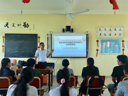 9月25日,柬埔寨王家研究院孔子学院棉芷大学中文系开展孔子学院日系列活动之“孔子生平及思想”专题讲座。本次讲座由棉芷大学中文系负责人赵雨老师主讲,棉芷大学中文系全体教师以及学生和中文爱好者50余人参加。