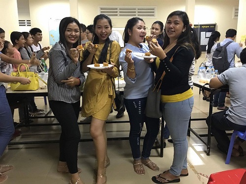 表演结束后,学什么纷纷拿出了自己制作的柬埔寨特色美食,汉语中心的老师们也端出了自己精心准备的月饼、水果和饮料请大家一起品尝。师生们一起品尝美食,观赏明月,汉语中心沉浸在温馨和谐的氛围中。