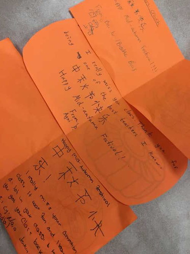 当地时间10月4日,萨凡纳州立大学孔子学院中学教学点——德雷纳中学(DeRenne Middle School)的汉语课堂热闹非凡。为庆祝中国传统中秋佳节,汉语教师刘抒雨向学生们介绍了中秋节的相关背景知识,带领大家品尝了不同口味的月饼,并在画有月饼的卡片上用中文写下了对在校老师们的中秋祝福。课后,同学们将亲手制作的中秋祝福卡片送给了相关老师和学校工作人员。制作并赠送中秋感谢贺卡活动不仅使广大师生对中秋节这一中国传统节日有了进一步的认识和了解,同时也增进了师生间的感情。不少当地老师纷纷在社交媒体上晒出收到的中秋月饼感谢贺卡,祝福大家中秋节祝福。