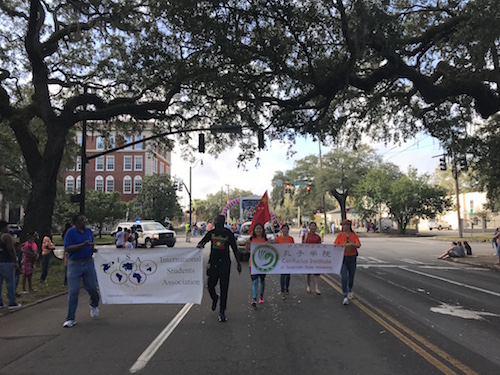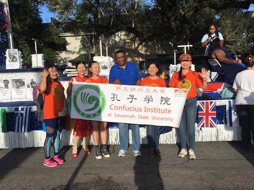 当地时间10月7日,萨凡纳州立大学孔子学院全体教师参加了萨凡纳州立大学一年一度的“大学校友日”庆祝游行活动。此次活动在萨凡纳市中心举行,上万名萨市群众聚集在市区道路两旁,同萨凡纳州立大学校友们一同庆祝这一盛大的活动。