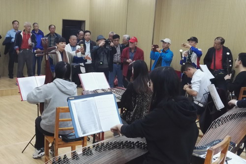 老同志认真仔细,饶有兴趣地观摩了高水平的管弦乐、民乐、合唱乐的现场教学,观摩了精湛的民间舞、藏族舞、现代舞的教学课程,观摩了琴房教学活动,观摩了美术、书画教学课程。