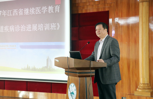 张志平院长在开班仪式上致辞,他向参会专家和学员们介绍了临床医学院/附属医院概况和眼科发展情况。他说,会议邀请了吴教授、廖教授两位顶尖的专家,同大家分享眼科学科方面的新进展、新知识,是一次难得的学习与交流机会。他希望通过培训,参会医疗单位能提高眼科医学科研及诊疗水平,并进一步增进友谊。而此次省级继续医学教育项目培训班在我院开班,是对我院综合实力的肯定,我院也将会与各医院一道,积极探索,推动眼科学科的建设与发展,为我省眼科事业做出更大的贡献。