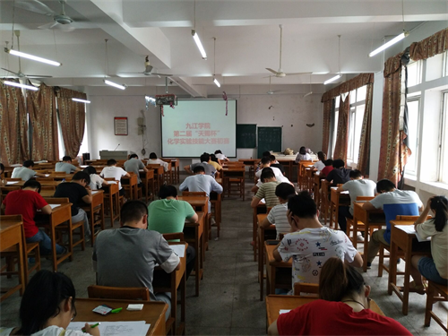 历时半年的九江学院第二届“天赐杯”大学生化学实验技能大赛日前圆满举行。本次大赛得到了陶春元副校长、实验中心、教务处等各级领导的关心支持、九江天赐高新材料有限公司的大力赞助,由化学与环境工程学院承办。大赛第一轮通知2017年5月11日在校园网挂出后,有化学与环境工程学院、机械与材料工程学院、药学与生命科学学院、基础医学院及临床医学院共381名学生报名参赛,其中专业组50名,非专业组331名。