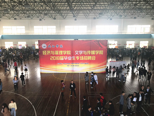 10月28日,秋高气爽,风和日丽,经管学院和文传学院2018届毕业生专场招聘会在学校南区体育馆举办。数千名应届毕业生踊跃参加此次招聘会,现场气氛热烈。副校长夏启国来到招聘会现场,并与应聘的毕业生和企业代表进行交流,招生与就业处、经管学院、文传学院领导及许多老师到了招聘会现场。