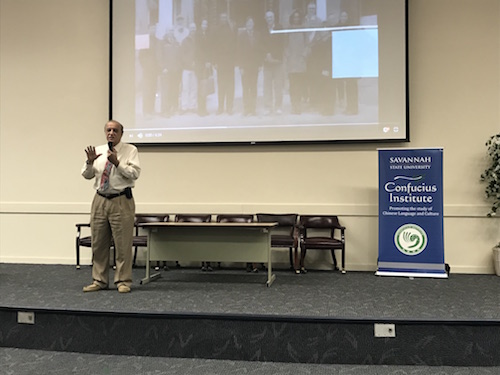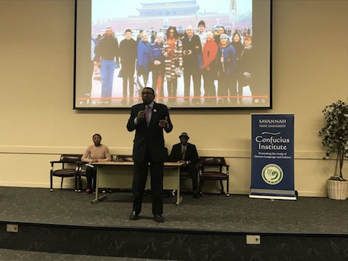 弗雷泽(William Frazier)先生是萨凡纳州立大学的校友,毕业后前往中国同济大学继续深造,获得了城市规划博士学位,并在上海成功创业,从此便在中国扎下了根,一待就是十多年。他用自己的亲身经历向现场听众描绘了一个“外国人在上海”的故事。“从前,我对中国的认识只有李小龙,那个穿着黄色衣服耍双截棍的功夫影星。当我去到中国,去到上海,才发现我对中国的印象都过时了。在上海,你能看到全球各地的人,他们有着各种肤色,说着不同的语言,但所有人聚集在这里,都是为了寻求机会。可以说上海是一个世界之都。你能想象吗?如今,在中国,人们出行只需要一部手机。微信、支付宝、共享单车、高铁……这些都能用手机、用网络实现。”弗雷泽先生强调,到中国学习、工作是他人生中最大的转折和惊喜。美国的大学生应当迈出第一步,勇敢地走出去,做自己的大使,用心去了解别人,别人也会真诚地对待你,机会永远是留给这些有准备的人的。