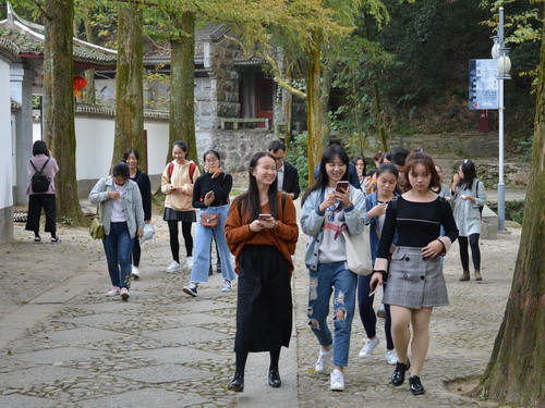 日前,我校第四届(2017)国学经典研读班同学在班主任庐山文化研究中心赵伟老师及导师文学与传媒学院郑连聪老师的带领下,参访了千年学府白鹿洞书院。