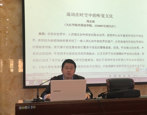 外国语学院周志高教授作为主讲人,他以《流动在时空中的听觉文化》为题为学院“学术活动月”拉开帷幕。报告中,周志高阐述了听觉文化的时间性和空间性,指出现实世界是一个充满了由图像、声音、气味、触摸、味道组成的感官世界。在现实世界中,人类通过各种感官的综合运用,感受和认知丰富而热烈的外部世界。感觉的失衡或残缺就像关闭了一扇人类认知外部世界的窗户,必然造成对外部世界感知的模糊或残缺,具有视、听功能障碍的人所认知的世界往往是不完整的。媒介不仅是“人类的延伸”,而且会改变人类的认知思维。毫无疑问,在现代社会视觉依然是我们接收外部世界信息的最主要感官,但是,听觉媒介的发展、声音政治的延伸、听觉技术与视觉技术的完美融合,以及无所不在的潜藏的声音规训现象,都向我们呈现了现代社会听觉文化研究的重要性。我们今天所处的世界,既被图像包围,又被声音环绕;既创造了各种各样丰富的声音现象,也被不同的听觉文化塑造或构建。从文化的角度来看,不同时期、不同地区、不同民族具有不同的文化,因此,听觉文化的意义必须放在具体的时、空中进行研究才能对其精准把握。我们可以说,听觉文化是流动在时空中的。讲座中周志高教授严谨的论证、渊博的知识、风趣的语言都给我院老师留下了深刻的印象。