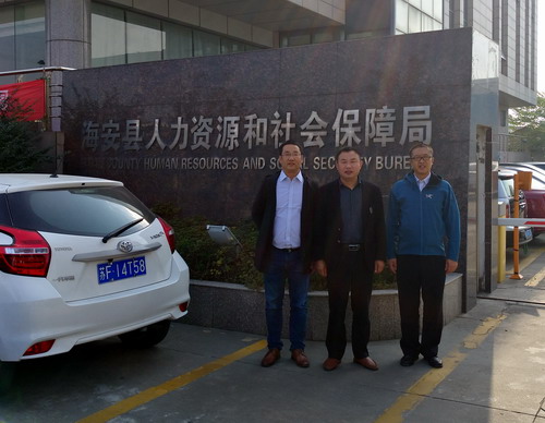 调研小组先后走访了诺嘉国际集团、南京诺轩智能科技、江苏车置宝、铁锚玻璃、中国天楹股份有限公司、南通大西洋地板及江苏省海安县人力资源与社会保障局等企事业单位。