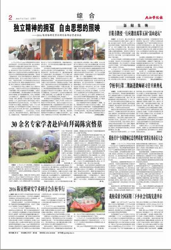 11月7日,2016年度中国高校校报协会好新闻评选结果揭晓。我校师生2件新闻作品获奖。党委宣传部李龙同志的作品《30余名专家学者赴庐山拜谒陈寅恪墓》获消息类三等奖;校报学生记者团吴璠同学的作品《让清明真正“清明”起来》获言论类三等奖。