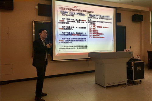为贯彻落实《江西省人民政府加快特色型知识产权强省建设的实施意见》,加强知识产权教育工作,11月13日下午,政法学院知识产权教研室副主任刘闻博士受邀出席鹰潭市月湖区中小学知识产权教育师资培训班,为全区教师代表授课。培训班由月湖区知识产权局和区教体局联合举办,由区科技局局长夏军峰主持。