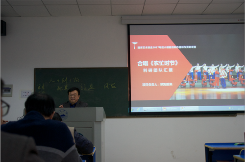 会上,欧阳时来还介绍了项目团队的情况,并介绍和分享了《农忙时节》的成功申报经验,希望借此项目进一步提升我校艺术学院的科研水平,也希望全体老师以此为契机,共同推进我校的艺术教育和艺术实践水平。
