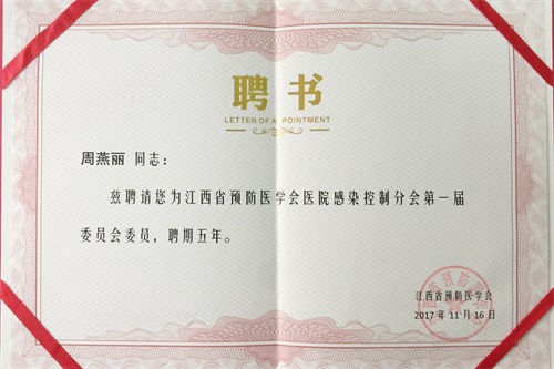 临床医学院/附属医院院感科周燕丽获聘省预防医学会医院感染控制分会委员