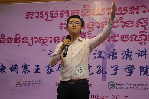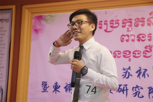 12月2日,第七届“江苏杯”汉语演讲比赛暨柬埔寨王家研究院孔子学院汉语风采大赛预赛在柬埔寨孔子学院三楼多功能厅顺利举行。来自柬埔寨全国各地18-25岁的大学生或社会人士积极报名参与,共计78名选手参加了此次比赛。柬埔寨王家研究院孔子学院柬方院长苏碧娜女士(VUTH Sopheakna)出席并讲话,本次比赛由柬埔寨孔子学院亚欧大学中文系公派教师乐雷汉、黄青山、陈惠玲、戴嘉维,孔子学院本部志愿者教师黄书、刘彧昭、马家琪担任评委。现场有选手及其亲友团约150余人,场面热闹。