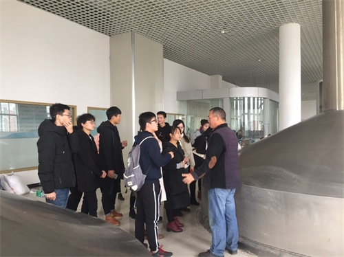 随后,将同学们分为两组,在公司技术员的带领下,分别走进了啤酒、白酒生产技术领域,参观学习了啤酒、白酒酿造车间,灌装和包装过程以及啤酒、白酒检测工艺。使同学们详细了解了啤酒、白酒从原料到产品整个工序流程。